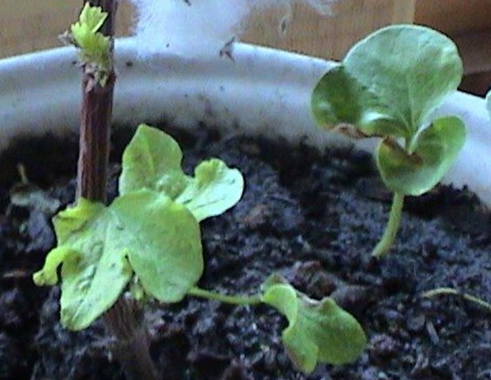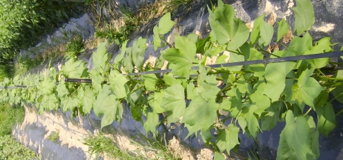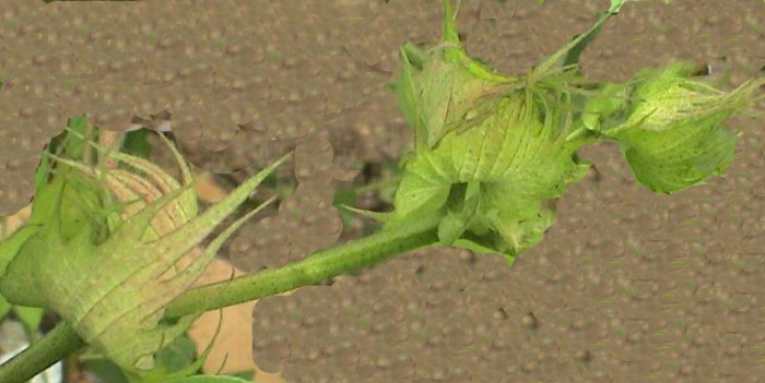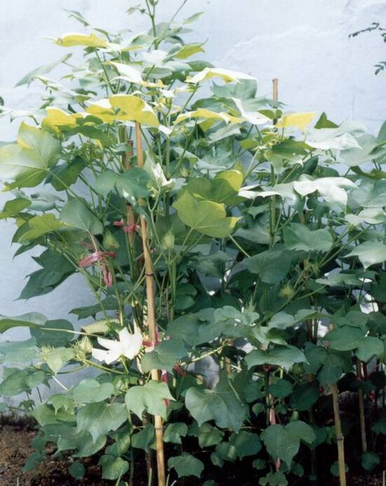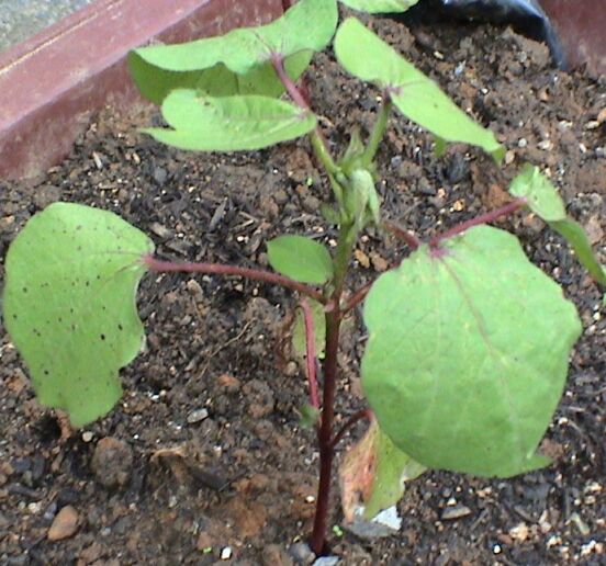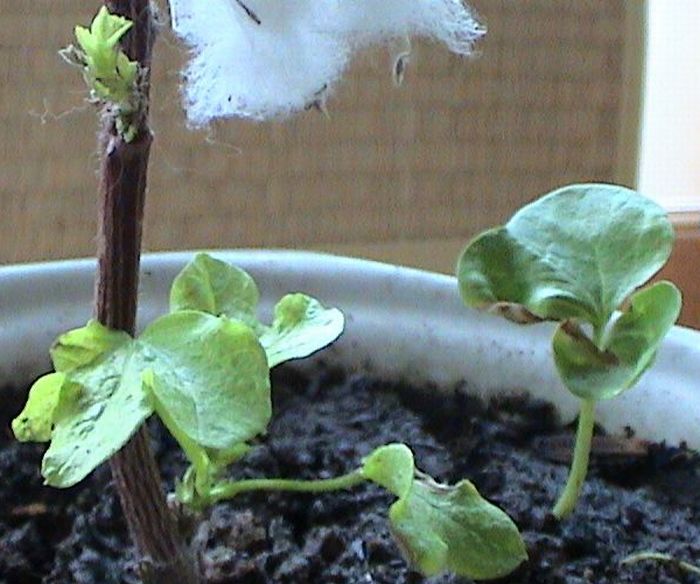 지난해의 묵은 가지에서 난 목화의 새싹(목화는 다년생임) | |