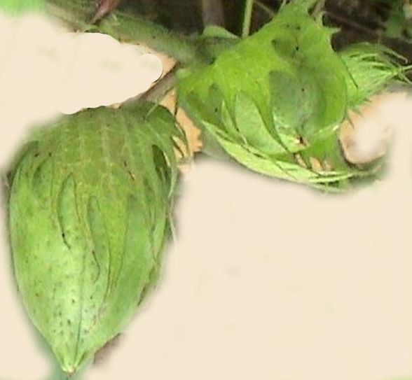 솜꽃 | 다래가 익어서(재래종 30일 육지면 43일) 갈색으로 변하고 서서히 벌어지면서 목화 솜이 보입니다. 관상용으로 두면 겨울에도 솜을 볼수 있습니다 |