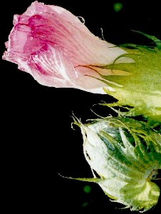 목화는 포엽에 쌓여있던 꽃봉오리가 점점 길어진뒤에 꽃이 핍니다 꽃은 처음에는 희지만 |