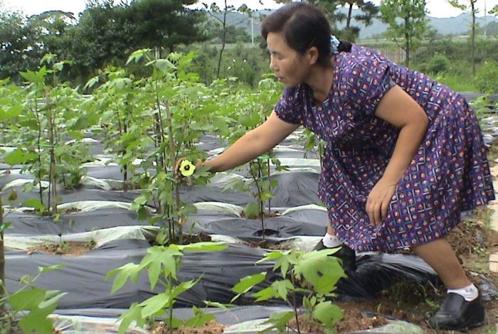 대구 화원의 목화밭 | 자라가는 목화 | 목화의 개화 |